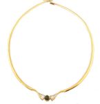 Estate 14k .85 cttw Baguette Diamond & Tourmaline Omega Necklace